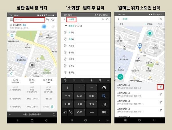 ▲ KT원내비 소화전 검색방법[출처=경기도청]