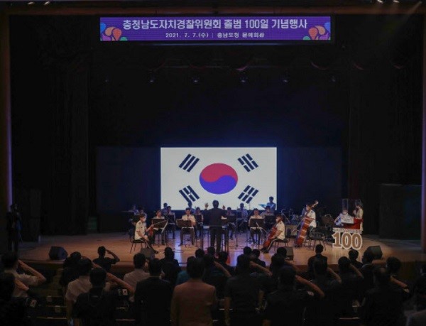도는 7일 도청 문예회관에서 이우성 문화체육부지사, 김명선 도의회 의장, 김지철 도교육감, 이철구 도 경찰청장, 권희태 자치경찰위원장 등이 참석한 가운데, ‘충남 자치경찰 위원회 출범 100일 기념행사’를 개최했다.