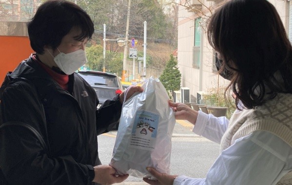 | ▲ 성동구는 지인 프로젝트 참여 대상자에게 홍보물을 전달하고 있다[출처=성동구청] |