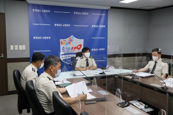 코로나19 감염 방지를 위해 영상회의 방식으로 진행된 회의에는 조선호 소방본부장과 소방본부 각 과장, 16개 소방서장 및 충청소방학교장 등 30여 명이 참석했다.