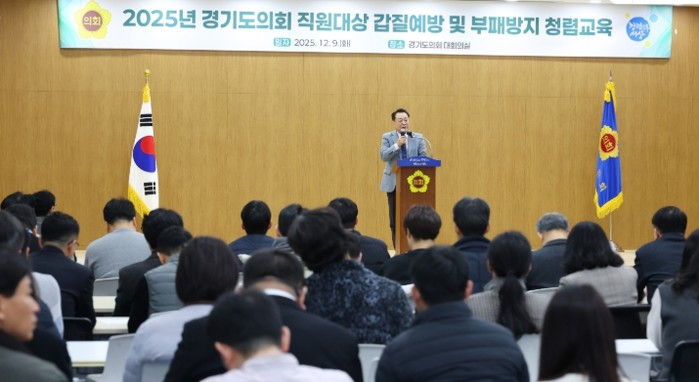 [코리아 이슈저널=홍춘표 기자] 경기도의회는 9일 오전 의회 대회의실에서 전 직원을 대상으로 ‘갑질예방 및 부패방지 청렴교육’을 실시했다.