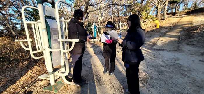 [코리아 이슈저널=홍춘표 기자] 울산 남구의회 김예나 의원이 동절기 ‘의원 1일 민원담당제’ 당직 근무일인 12일 남산근린공원을 찾아 도시공원 일몰제에 따른 사유지 개발과 관련 주민 의견 수렴 설문조사에 나섰다.