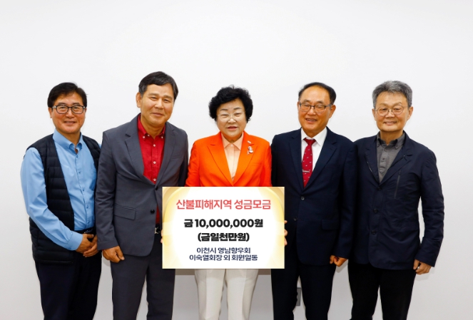 [코리아 이슈저널=홍춘표 기자] 이천시 영남향우회(회장 이숙열)는 2025년 5월 16일 이천시청 5층 다올실에서 영남지역 산불 피해 복구를 위한 성금 기탁식을 했다.