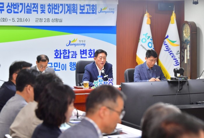 [코리아 이슈저널=김종오 기자] 장성군이 27~28일 양일간 군청 상황실에서 ‘2025년 군정 상반기 실적 및 하반기 계획 보고회’를 가졌다.