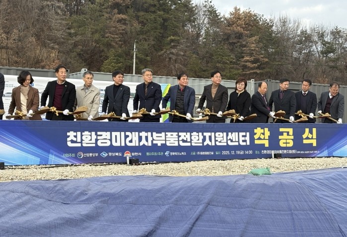 [코리아 이슈저널=김태훈 기자] 경상북도는 19일 김천1일반산업단지에서 도내 기업의 미래 차 친환경 경량 소재 적용 부품 생태계 기반 조성을 위한 ‘친환경 미래 차 부품 전환 지원센터’ 착공식을 가졌다.