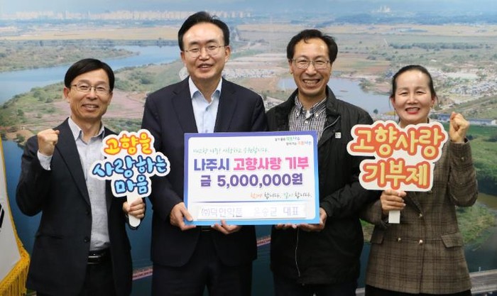 [코리아 이슈저널=김종오 기자] 전라남도 나주시는 ㈜덕인약품 윤송균 대표가 올해까지 3년 연속 나주시에 고향사랑기부금을 기탁했다고 11일 밝혔다.