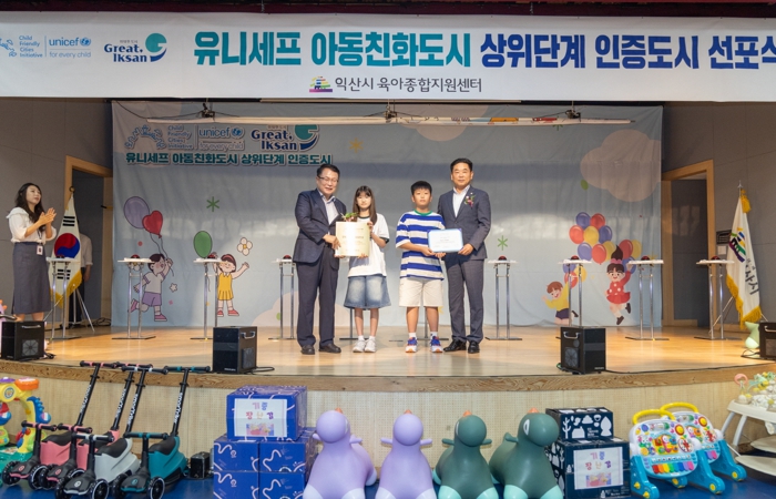 익산은 아동의 4대 권리(생존·보호·참여·발달)를 보장하기 위한 정책 추진 성과와 노력을 인정받아, 지난달 20일 유니세프 한국위원회로부터 상위단계 인증을 획득했다.