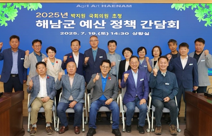 [코리아 이슈저널=김종오 기자] 해남군은 19일 해남·완도·진도 지역구 박지원 국회의원을 초청, 2025년 예산·정책 간담회를 개최하고, 지역 현안 사업의 성공적 추진을 위한 협조체계를 구축하고 지역미래발전을 위한 국회와 지자체의 힘을 모아 나가기로 했다.