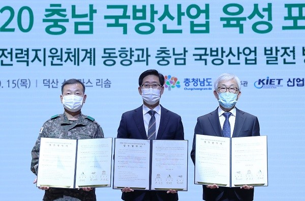 이날 MOU는 ‘도-군수사령부-논산시’ 등 3개 기관이 국방 국가산단을 향후 전력지원체계 산업의 중심이자, 4차 산업혁명과 연계한 첨단 방위 산업의 본원지로 발전시키는 데 힘을 모으기 위해 추진됐다.