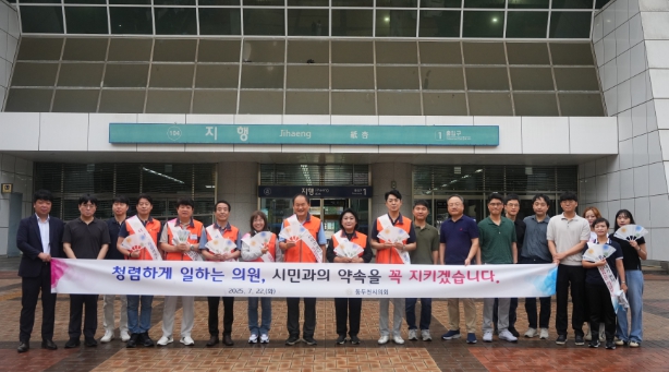 [코리아 이슈저널=홍춘표 기자] 동두천시의회는 7월 22일, 지행역 일원에서 “청렴은 시민과의 약속” 캠페인을 펼치고, 이어 신천변 일대에서 환경정화 활동을 전개하며 공직자의 청렴 실천 의지를 시민과 함께 나눴다.