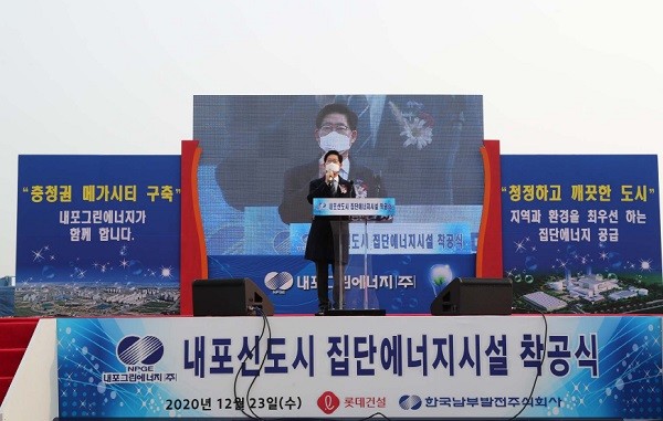 이날 착공한 내포집단에너지시설은 예산군 삽교읍 일원에 555㎿(LNG 495&수소 60)로 들어서며, 2023년 6월 준공 예정이다.