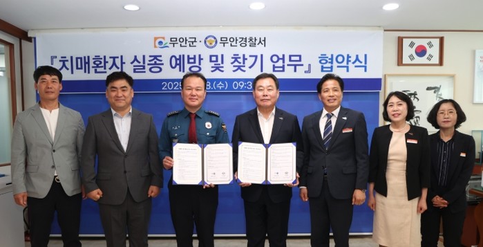 [코리아 이슈저널=김종오 기자] 전남 무안군과 무안경찰서는 28일 치매환자의 실종 예방과 실종 발생 시 신속한 발견과 보호를 위한 ‘치매환자 실종 예방 및 찾기 사업’ 업무협약을 체결했다.