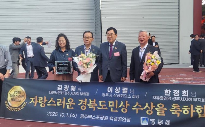 [코리아 이슈저널=김태훈 기자] 경주시는 1일 열린 ‘2025 자랑스러운 경상북도민상’ 시상식에서 경주시민 3명이 수상자로 선정되는 영예를 안았다고 밝혔다.