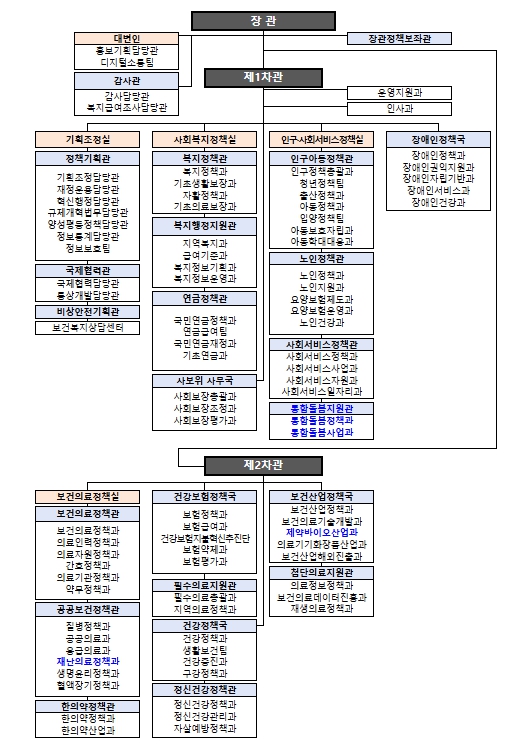 복지부는 이번 조직 개편을 통해 1관, 4과 신설, 39명을 증원함으로써 2020년 2차관 신설 이후 최대 규모로 조직개편을 단행하게 됐으며, 세부 내용은 다음과 같다.
