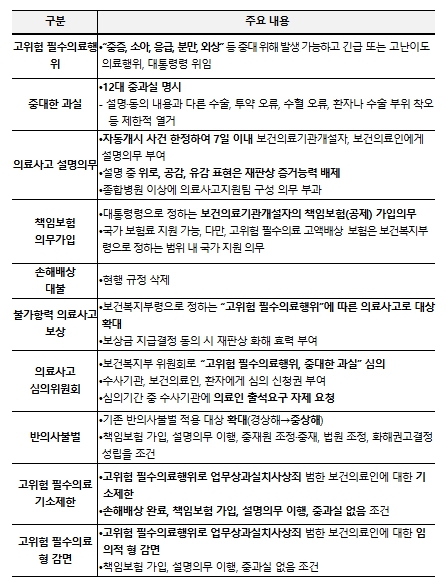 의료기관 책임보험 의무 가입, 고위험 필수의료행위 형사부담 완화