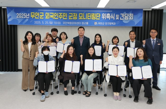 [코리아 이슈저널=김종오 기자] 전남 무안군은 지난 25일 ‘2025년 외국인주민 군정 모니터링단 위촉식 및 간담회’를 열고, 정책 참여 확대와 현장 의견 수렴을 통해 실효성 있는 외국인 지원 정책을 본격 논의했다.