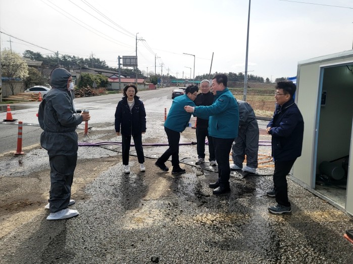 군은 즉시 발생농장과 주요 도로에 통제초소를 9개소로 확대 운영하고, 드론 공동방제단과 제설차량까지 투입해 방역대 집중 방역을 실시하고 있다.