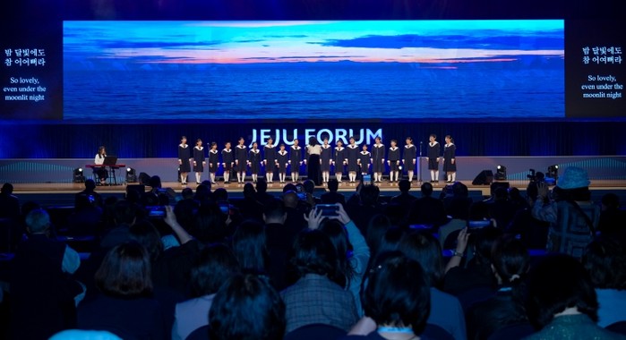 [코리아 이슈저널=김태훈 기자] 제주특별자치도와 일본 도쿠시마 어린이들이 함께 부른 평화와 화합의 선율이 ‘제20회 평화와 번영을 위한 제주포럼’ 개회식에 감동의 울림을 전했다.