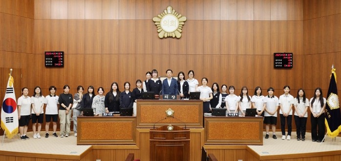 김연균 의장은 학생들을 맞이해 환영 인사를 전하며, “오늘의 경험이 미래의 꿈을 그려보는 계기가 되길 바란다”며 “시민의 목소리에 귀 기울이는 시의회를 직접 보고 느낄 수 있는 소중한 시간이 되기를 바란다”고 말했다.