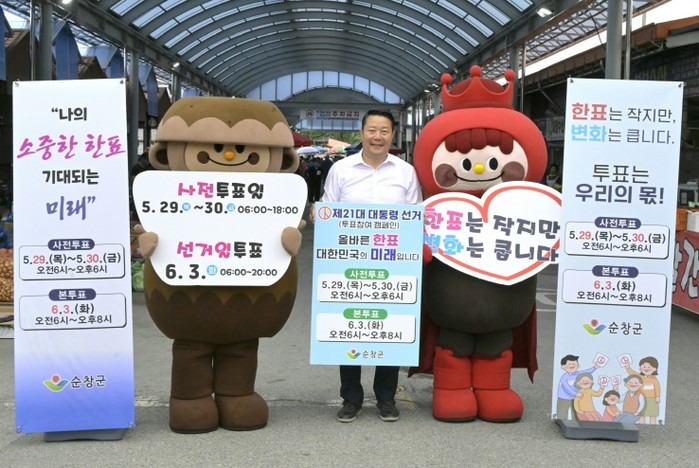 최영일 군수는 “사전투표에서 전국 1위를 달성할 수 있었던 것은 군민 여러분의 높은 관심과 적극적인 참여 덕분”이라며, “이 열기를 본투표까지 이어가 순창군이 다시 한번 전국 1위 투표율을 기록할 수 있도록 끝까지 최선을 다해 홍보하겠다”고 밝혔다.