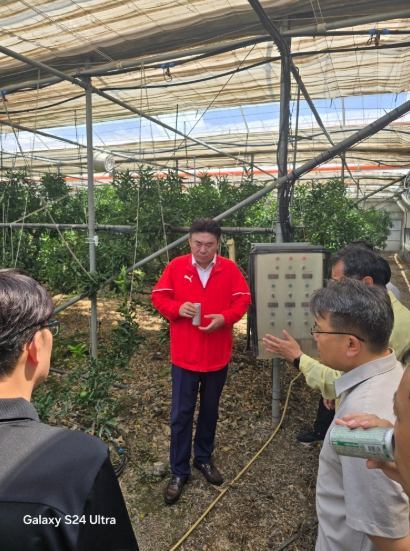 [코리아 이슈저널=김태훈 기자] 제주특별자치도의회 강충룡 부의장(국민의힘, 송산·효돈·영천동)은 1일 서귀포시 남원읍 위미리 소재 관수·관비시설 설치 농장을 방문해, 최근 가뭄과 이상기후에 따른 수분 관리 대책 마련을 위한 현장 간담회를 개최했다.