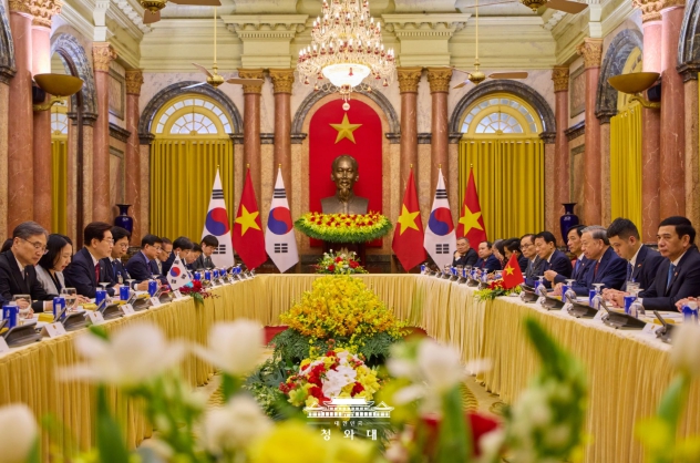 [코리아 이슈저널=최성일 기자] 베트남을 국빈 방문 중인 이재명 대통령은 22일(현지시간) 오후 베트남 국가주석궁에서 또 럼 당서기장 겸 국가주석과 정상회담을 갖고, 양국 간 포괄적 전략 동반자 관계 발전 방안과 지역·국제 정세 등에 대해 심도 있게 논의했다고 이규연 청와대 홍보소통수석이 서면 브리핑했다.