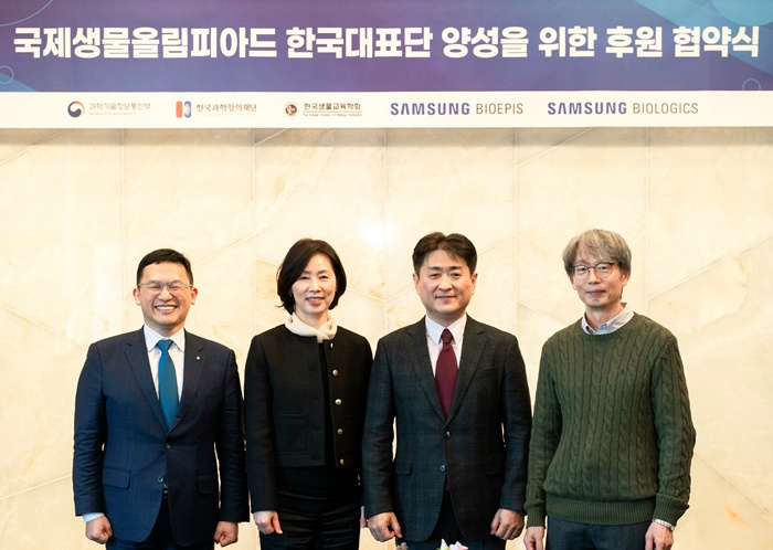 삼성바이오에피스와 삼성바이오로직스는 7일 서울 강남구 한국과학기술회관에서 한국과학창의재단 및 한국생물교육학회와 함께 '국제생물올림피아드' 후원 협약을 체결했다고 8일 밝혔다.