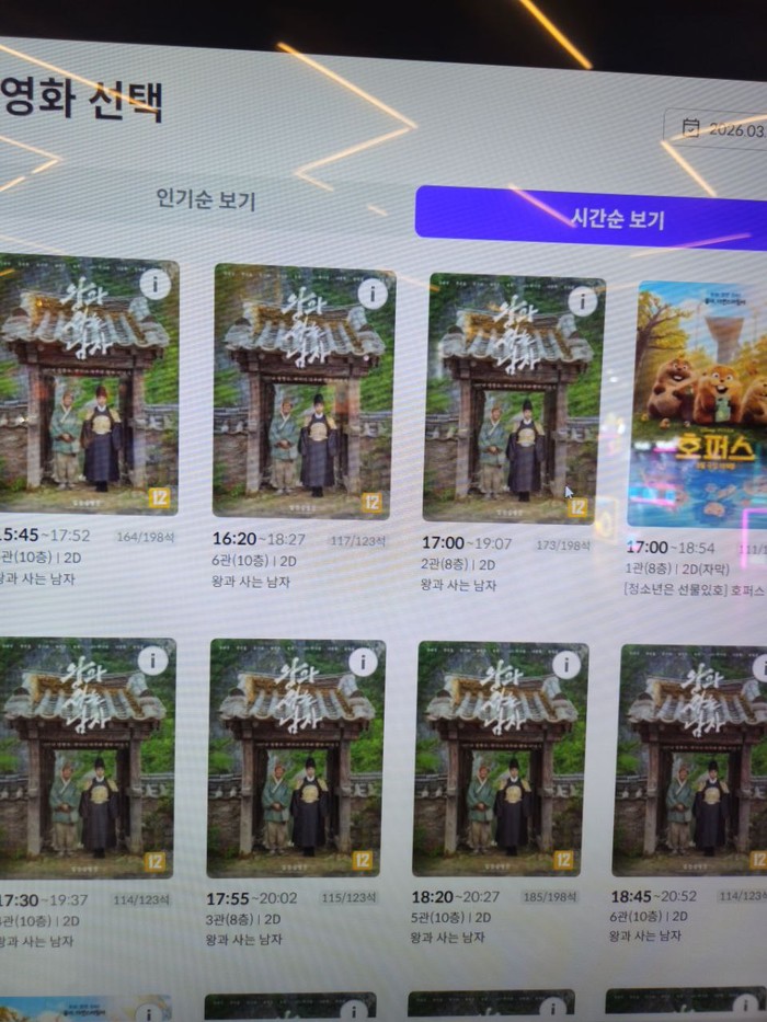 | ▲ 이수역 매가박스의 왕과사는 남자의 상영시간 시간표 |