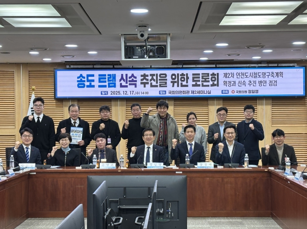 [코리아 이슈저널=홍종수 기자] 더불어민주당 정일영 국회의원(기획재정위원회, 인천 연수을)이 17일 14시, 송도 트램 신속 추진 토론회를 국회 의원회관 제2세미나실에서 개최했다고 밝혔다.