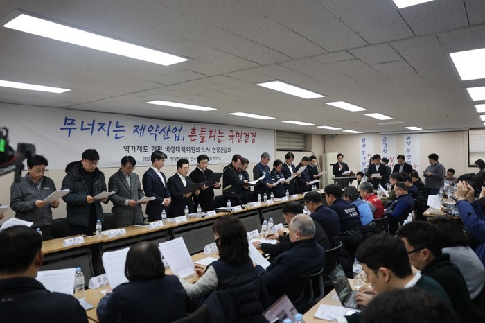 약가제도 개편 비상대책위원회’(공동위원장 노연홍 ·윤웅섭)가 22일 경기도 화성시 향남읍에 위치한 한국제약협동조합 회의실에서 ‘정부 약가 개편안 관련 현장 간담회’를 개최했다. 한국제약바이오협회 홈페이지 캡처 [코리아이슈저널=차미솜 기자] 정부 약가 인하 개편안에 대해 제약업계 노사와 정치권 등에서 반발이 이어지고 있다. 제약사 노조 등으로 꾸려