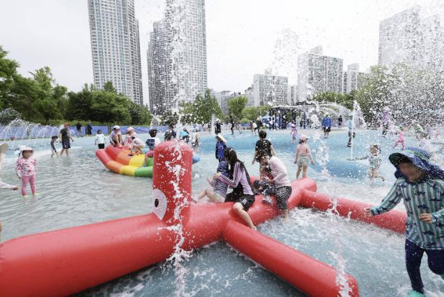 | ▲ 중앙공원 물놀이장에서 아이들이 물놀이를 즐기고 있다. |