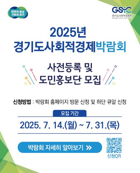 [코리아 이슈저널=홍춘표 기자] 경기도와 경기도사회적경제원은 오는 9월 12일과 13일 양일간 수원컨벤션센터에서 열리는 ‘2025년 경기도사회적경제박람회’의 공식 누리집을 7월 14일 오픈하고 본격 홍보에 돌입했다.
