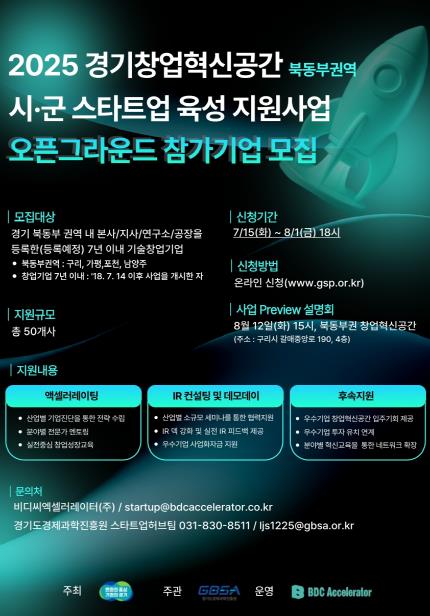 7월 15일부터 7월 31일까지 ‘2025년 북동부권 경기창업혁신공간 오픈그라운드’ 참가기업 모집