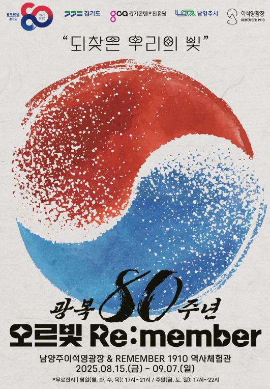 [코리아 이슈저널=김윤영 기자] 경기도가 광복 80주년을 맞아 잃어버렸던 빛을 되찾은 역사적 순간을 최첨단 문화기술 콘텐츠로 재조명하고자 8월 15일 광복절부터 9월 7일까지 남양주시 이석영광장과 리멤버(REMEMBER)1910 역사체험관 일대에서 문화기술 콘텐츠 전시 브랜드 ‘오르:빛’의 네 번째 체험형 전시 ‘오르빛 리멤버(Re:member)’를 개최한다.