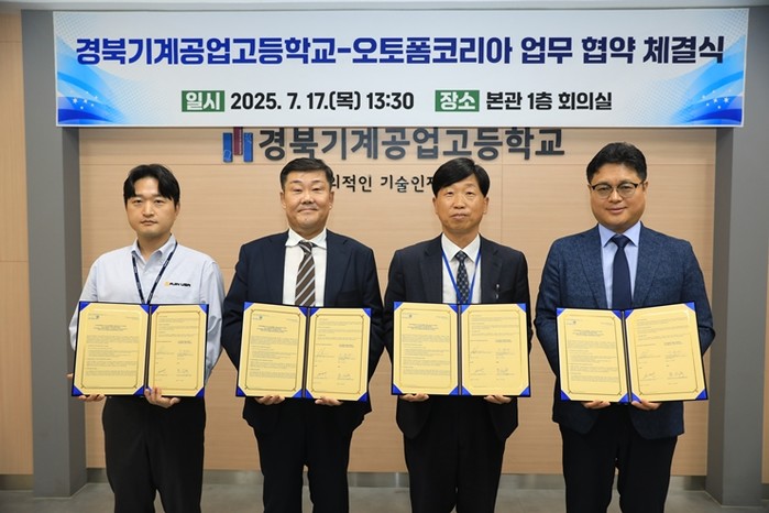 2025년 7월 17일(목), 경북기계공업고등학교(교장 이준구)와 오토폼코리아(대표이사 조영빈)는 금형산업의 미래 인재 육성과 지역 산업 발전을 위한 산학협력 업무협약(MOU)을 체결했다.