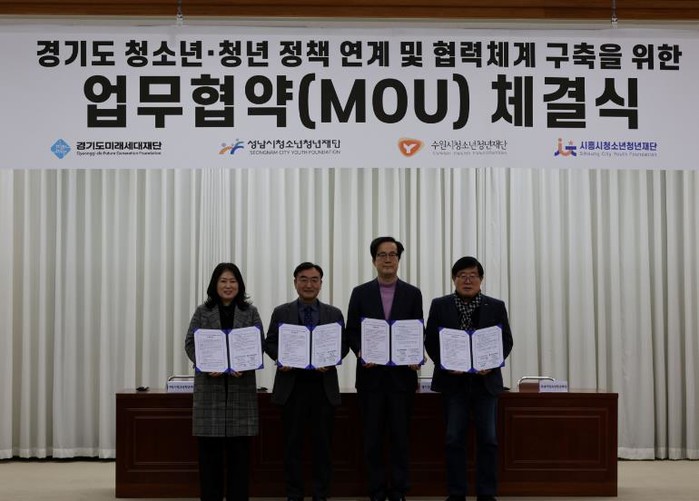 [코리아 이슈저널=홍춘표 기자] 경기도미래세대재단은 12일 옛 경기도청사 신관 4층 대회의실에서 수원·성남·시흥시청소년청년재단과 ‘경기도 청년 정책 연계 및 협력체계 구축 업무협약’을 체결했다.