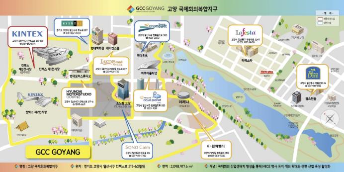 고양시는 2019년부터 킨텍스와 킨텍스 지원부지, 고양관광특구 일부 등 국제회의복합지구 약 210만㎡의 국제회의 산업 인프라 확충과 마이스 경쟁력 강화를 지원하고 있다.