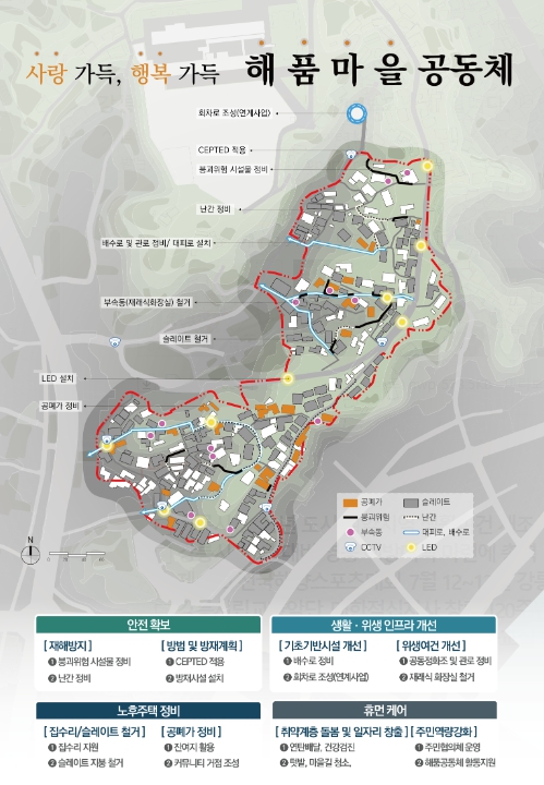 강릉시는 이번 사업을 통해 ▲재해 예방 및 방재시설 설치 등 안전확보 ▲배수로 및 공동정화조 정비 등 생활‧위생 인프라 개선 ▲집수리 및 슬레이트 철거 등 노후주택 정비 ▲돌봄, 공동텃밭 운영, 주민역량 강화 등 휴먼케어 프로그램을 종합적으로 추진할 계획이다.