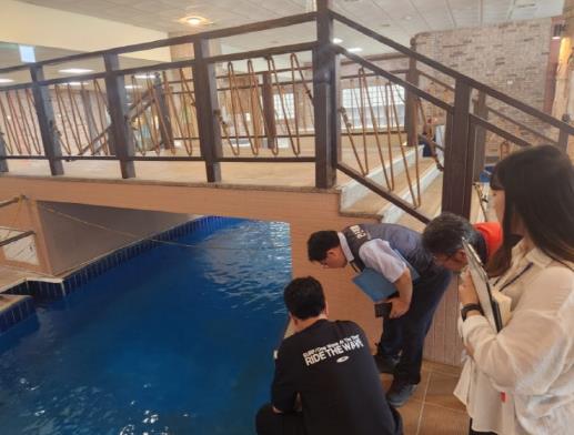 주요 점검내용은 ▲건축시설물 주요 구조부 균열·변형·침하 등 위험요인 발생여부 ▲누전차단기, 전선접속 상태 및 접지 적정 여부 ▲기계장치, 흡배기 펌프, 각종 기계 배관 등 관리 실태 ▲수질 및 위생관리 실태 ▲안전장비 및 설비 구비 여부 ▲안전요원 자격 및 적정 배치 여부 등이다.
