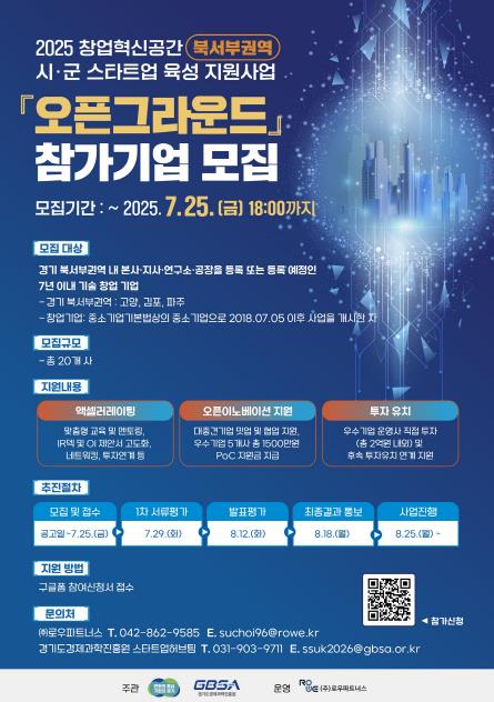 7월 4일부터 7월 25일까지 ‘2025년 북서부권 경기창업혁신공간 오픈그라운드’ 참가기업 모집