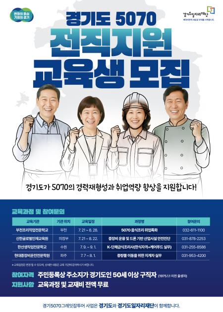 | ▲ 경기도 5070 전직지원 프로그램 교육생 모집 |