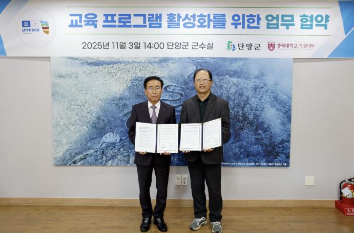 [코리아 이슈저널=홍종수 기자] 충북 단양군이 유네스코 세계지질공원의 교육 프로그램을 한 단계 도약시키기 위해 충북대학교 인문대학과 손잡고 융합형 교육사업을 본격화한다.