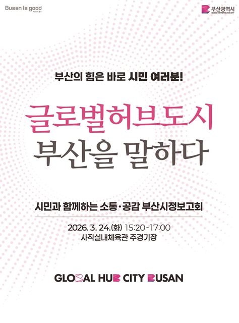 [코리아 이슈저널=김태훈 기자] 부산시는 오는 24일 오후 3시 20분 사직실내체육관 주경기장에서 시민과 지역 주요 인사 등이 참석한 가운데 '글로벌허브도시 부산을 말하다' 시정보고회를 개최한다고 밝혔다.