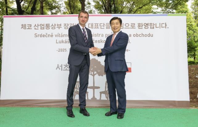 | ▲ 기념사진을 찍고 있는 전성수 서초구청장(오른쪽)과 루카쉬 블첵 체코 산업통상부 장관(왼쪽) |