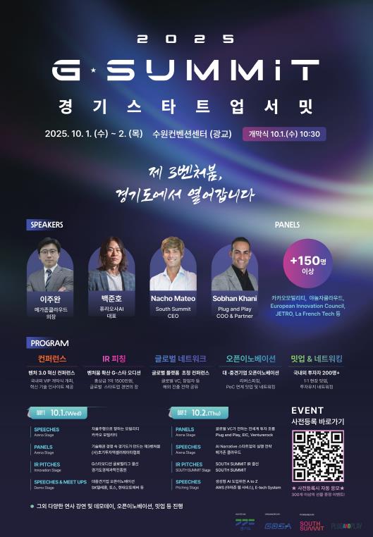 [코리아 이슈저널=김윤영 기자] 국내 최고 수준의 글로벌 스타트업 투자 박람회인 ‘경기 스타트업 서밋(G-SUMMIT)’이 오는 10월 1일부터 2일까지 수원컨벤션센터에서 열린다.