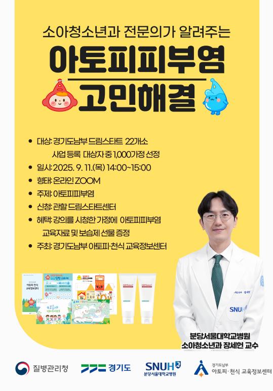 장윤석 경기도남부 아토피·천식 교육정보센터장은 “아토피피부염은 전체 소아 5명 중 1명이 앓고 있을 만큼 높은 유병률을 보이고 있지만 검증되지 않은 방법을 시도하다 피해를 입는 경우가 많다”며 “센터의 교육 프로그램이 아토피피부염 가정의 건강 회복을 위한 마중물이 됐으면 좋겠다”고 말했다.