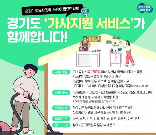 경기도는 이번 사업을 통해 맞벌이 가정이나 출산·양육으로 인해 가사에 어려움을 겪고 있는 가정의 부담을 덜어낼 수 있을 것으로 기대하고 있다. 실질적 도움이 되는 생활 밀착형 서비스로 저출생 대응 정책에도 긍정적인 역할을 할 전망이다.