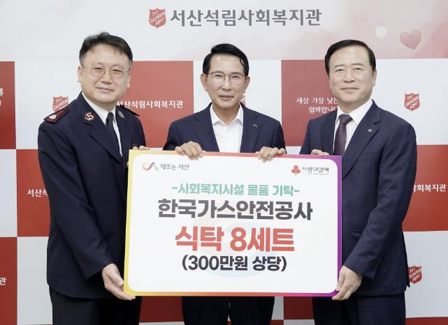 [코리아 이슈저널=홍종수 기자] 충남 서산시는 지난 1일 한국가스안전공사가 서산석림사회복지관에 3백만 원 상당의 테이블과 의자 8세트를 전달했다고 밝혔다.