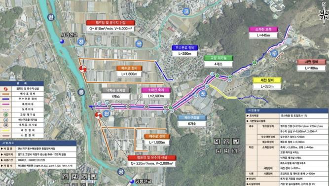 장월평천 일대에는 간이펌프장 2개소와 배수문 2개소가 신설돼 저지대 배수 불량 문제를 해소하고 시가지 및 농경지 90ha 침수피해를 예방한다. 현재 실시설계 중으로 2029년 준공을 목표로 하고 있다.