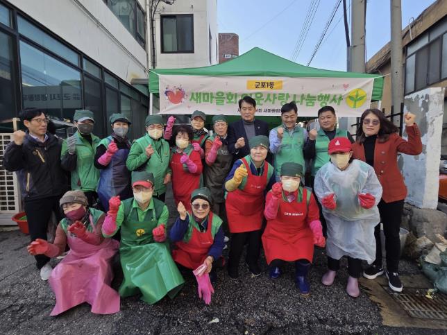 [코리아 이슈저널=홍춘표 기자] 지난 5일 군포시 군포1동새마을지도자협의회와 군포1동새마을부녀회는 군포1동행정복지센터 앞마당에서 ‘2025년 사랑담은 김장김치 담그기’행사를 열고, 지역 내 어려운 이웃을 위한 따뜻한 나눔을 실천했다.